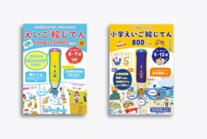 書店販売の英語学習用の音声ペン。 幼児~小学生低学年向けの『えいご絵じてん500&22 SONGS』と 高学年も対象とした『小学えいご絵じてん800』で 単語やフレーズ、歌などから、英語の学習ができます。