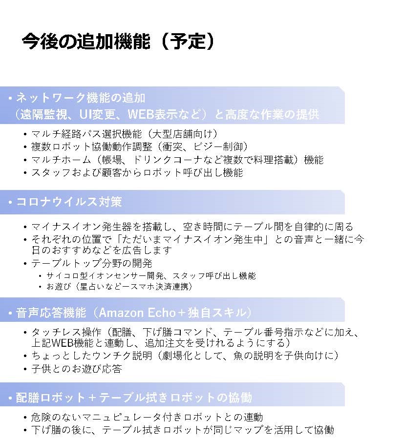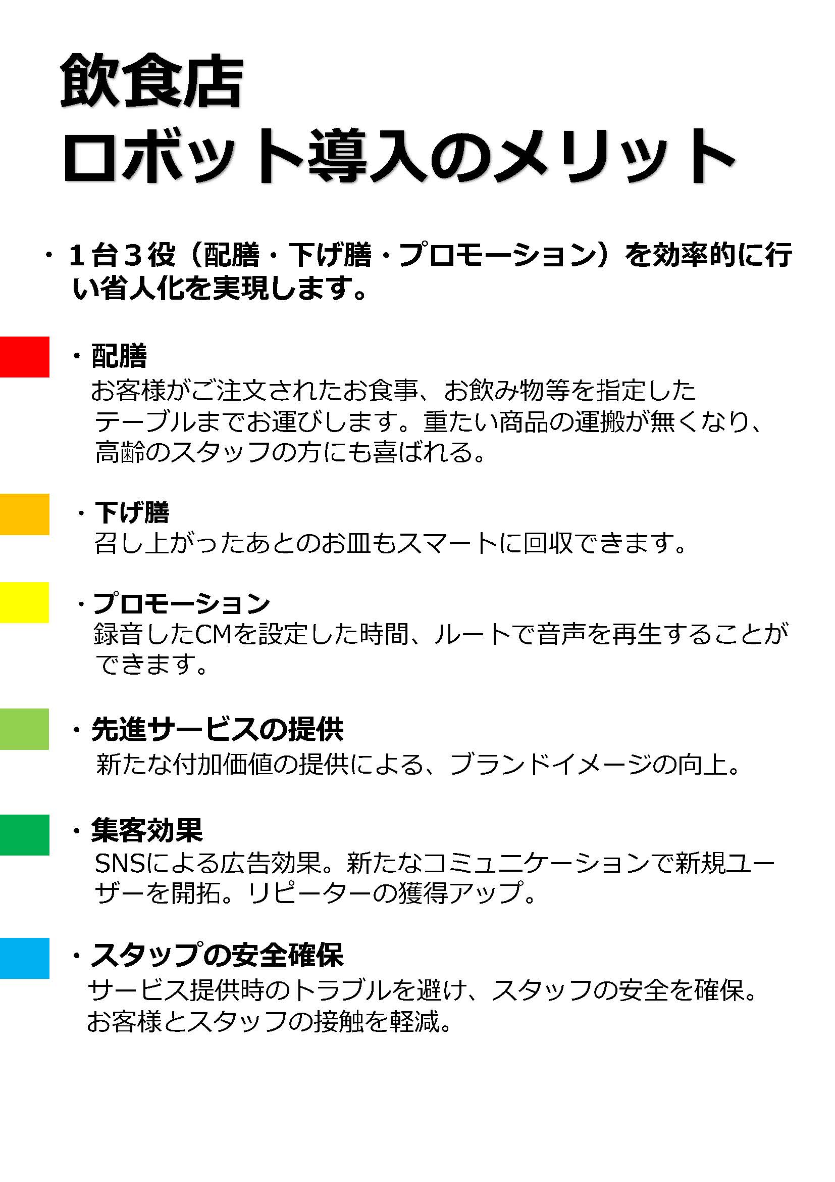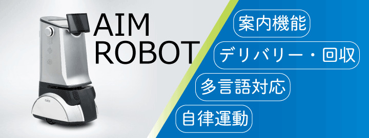 人手不足のサポートや感染症対策を目的としたAI配膳ロボット『AIM ROBOT』を取り扱っています。 配膳以外にも、お客様のご案内や宣伝活動なども行うことができ、多言語対応も可能となっています。 今後も新たな機能を追加予定です。