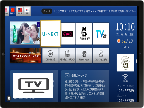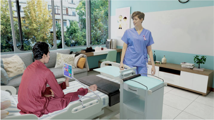 Androidスマートフォンでできることをテレビで提供致します。地上波・BS・CS・YouTubeの他にも音楽や映画、海外テレビ、映像配信サービスを展開することができ、あらゆるコンテンツでお楽しみ頂けます。専用アームをベッドと接続し、入院患者様向けサービスとして展開が可能です。